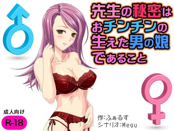 あの美人の先生にはある秘密があった… それはおチンチンが付いていること そんな秘密を知ってしまった1人の男子生徒と 男の娘である先生との2人だけの秘密… 作:ふぁるす シナリオ:Megu +おまけ付