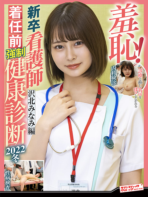 #身体測定#採尿#マンモグラフィー#筋肉注射#心電図検査#内視鏡検査#ぎょう虫#口腔検診#婦人科検診#男性器挿入検診#精液採取。「あ、ご無沙汰してます」「この病院だったんですね!」「今度、飲みいきましょうね!」イケメン研修医と顔見知りで意気投合な新任看護師「沢北みなみ」。この子、すごい可愛くてたまらんす。いかにもピュアな感じがする美形フェイス。が表情一変。新人は問答無用で全裸○制検査?え?え?理不尽な指示に戸惑い顔。「みんな医学的な観点でしか見てないから!」と○引に脱がされ、知り合いの前なのに~と、涙顔。○引に採尿、手マンで畳みかけると実は感じやすいカラダは潮!潮!潮!尻注射され、イケメン研修医が乳がん検診と称して乳首を摘まみ、恥ずかしいくらいに近い距離でどうしよ…。「なんだか喜んでないですか?真面目な検診なんですよ。実はエッチがしたくてしたくてじゃないんですか?」背後からリンパを触られ不意に見せる笑顔が緊張と可愛さでいっぱい。どうして?みんなでそんなにマンコに指入れまくるのぉぉ?すごい的確ぅ。と溢れ出ちゃう潮~。「この口内検診は当院オリジナルですからね。うちは最先端だから」とぐふぐふイラマ。「いかがですかね。このチンポはw」ぐちゃぐちゃ濡れマンコにギンギンデカチンを挿入触診。「痛いとか違和感あればすぐに言ってくださいね」恥ずかしい。でも、テクすごい。ジースポ感じちゃう。今度は騎乗位。しなやかなくびれの曲線美。左右から胸を乳首を研修医達が「ここですね貴女の感じるところはw」とこぞって触診。下からはイケメンのガン付き。自分でも動いて。とてもリズミカル。美乳が揺れ動くカラダを研修医たちにガン見され。おお!オーガズム?検診なのを忘れて喘ぎまくった沢北さん、H大好きじゃん!ん~、エロス顔たまらない。胸にどば。顔にどば。元気な精液を大量採取。感度も精液も測定完了。新任看護師がこんなにエロくてけしからん!でも、これで立派な看護師になれると太鼓判を押しておきました。